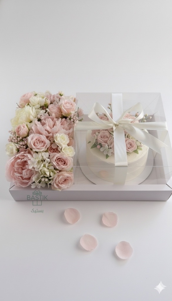 باکس گل و کیک | یک بستهبندی شیک 🌸🎂