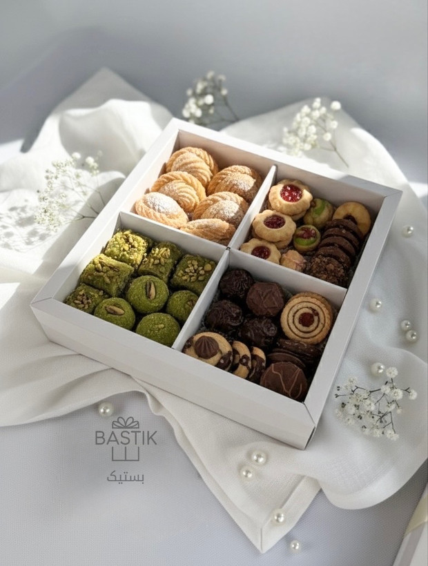 جعبه کلاسیک عطف دار مربع با در طلقی| جعبه فینگرفود ، جعبه شیرینی ، جعبه آجیل