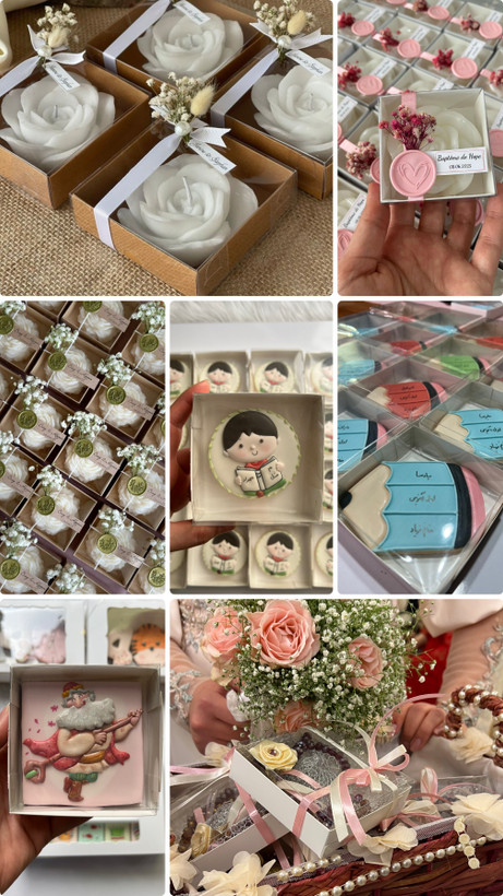 شمع ، عطر ، روسری ، کوکی ، شیرینی، شکلات، پک های هدیه ، پک های دفاعیه ، پک های هدیه شرکت ها، آجیل، عود ، صابون های دستساز، وسایل آرایشی و … صدها محصول دیگه و هر کسی که بسته بندی “برندش”براش مهمه 😊